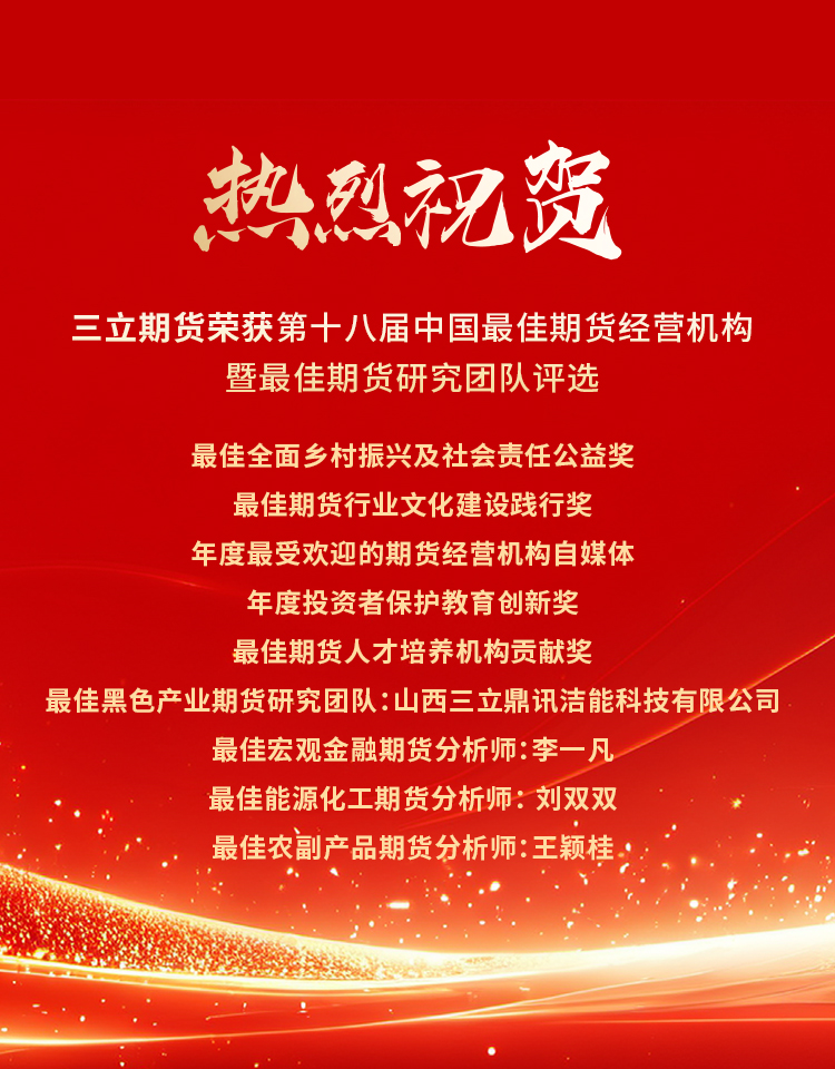 喜报丨三立期货斩获第十八届最佳期货经营机构评选多项大奖,多维贡献获行业肯定 11月26日,“2025 年期货业高质量发展创新研讨会暨第十八届中国最佳期货研究团队评选颁奖典礼” 在长沙落幕,三立期货凭突出表现斩获多项荣誉。 社会责任方面,三立期货践行 “利国利民利他”理念,借助期货专业广泛、深入推进乡村振兴助农工作;同时,还开展金融知识普及公益活动,履行企业公民责任;客户服务方面,公司以客户需求为核心,组建专业研究团队,聚焦核心产业链,提供定制化服务,助力客户规避风险、实现资产增值,获客户认可。在行业发展层面,三立期货积极推进数智化转型,推动金融科技与期货业务融合,还参与行业交流与标准建设,分享经验,助力提升行业整体水平。此次获奖是行业对三立期货各项工作的肯定,未来三立期货将继续在社会责任、客户服务、行业创新上发力,为期货业高质量发展添力。 打印本页关闭窗口